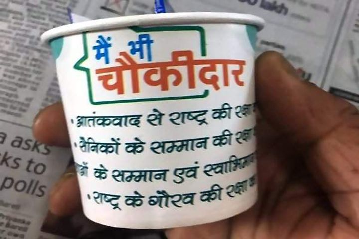 शताब्दी में 'मैं भी चौकीदार' के चाय कप पर बवाल, IRCTC ने की कार्रवाई